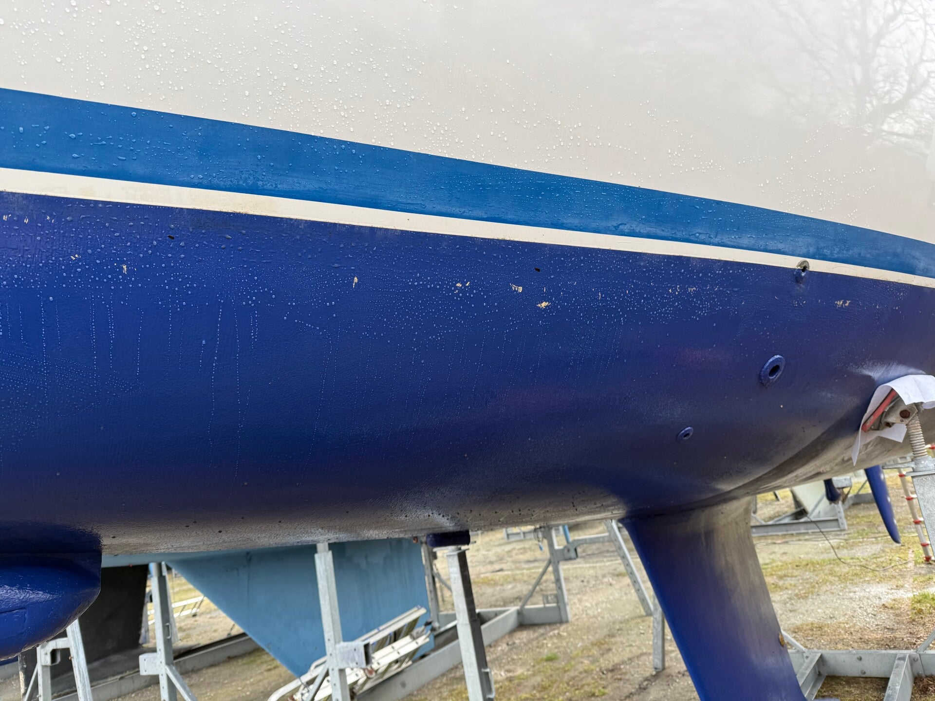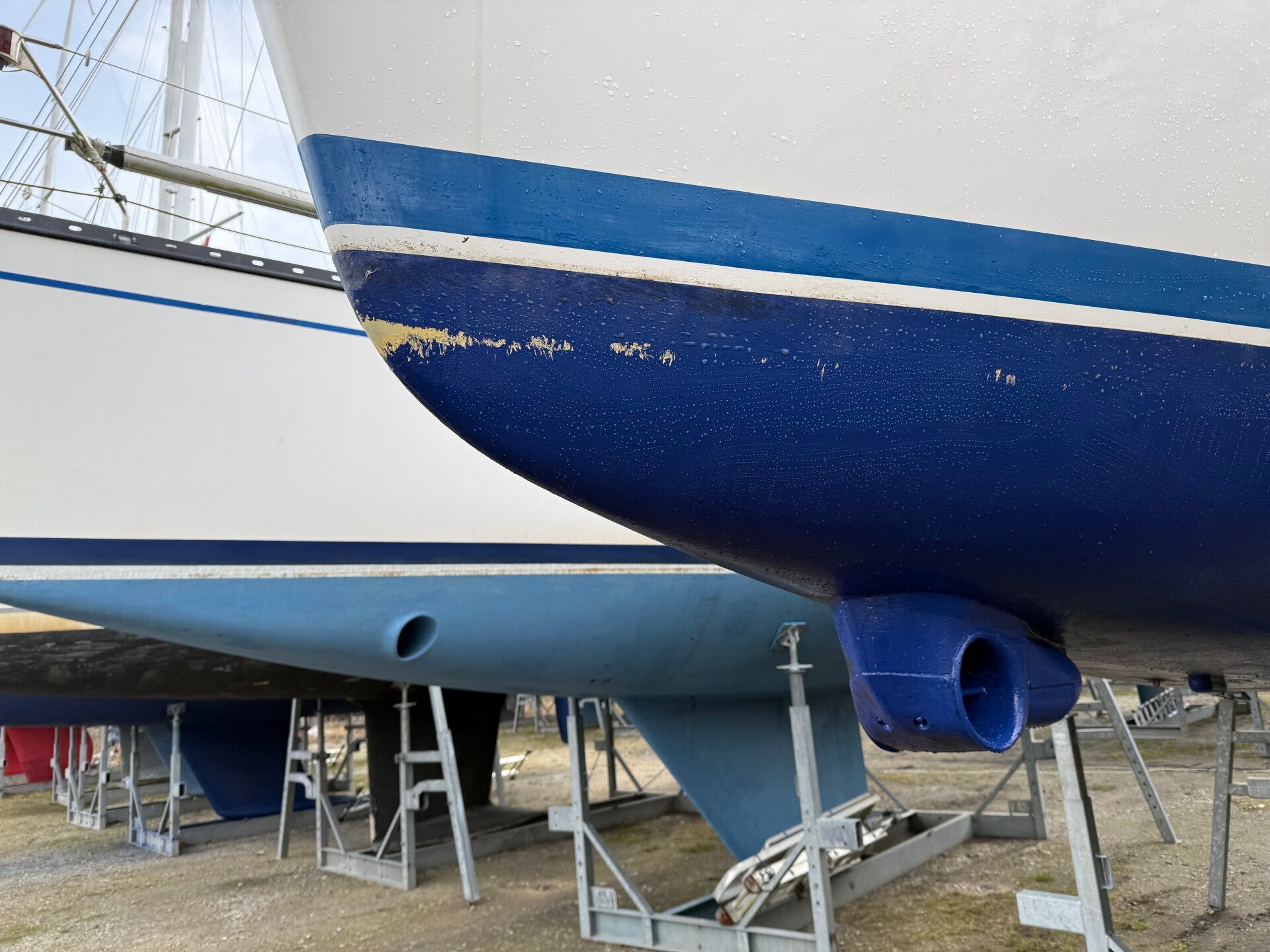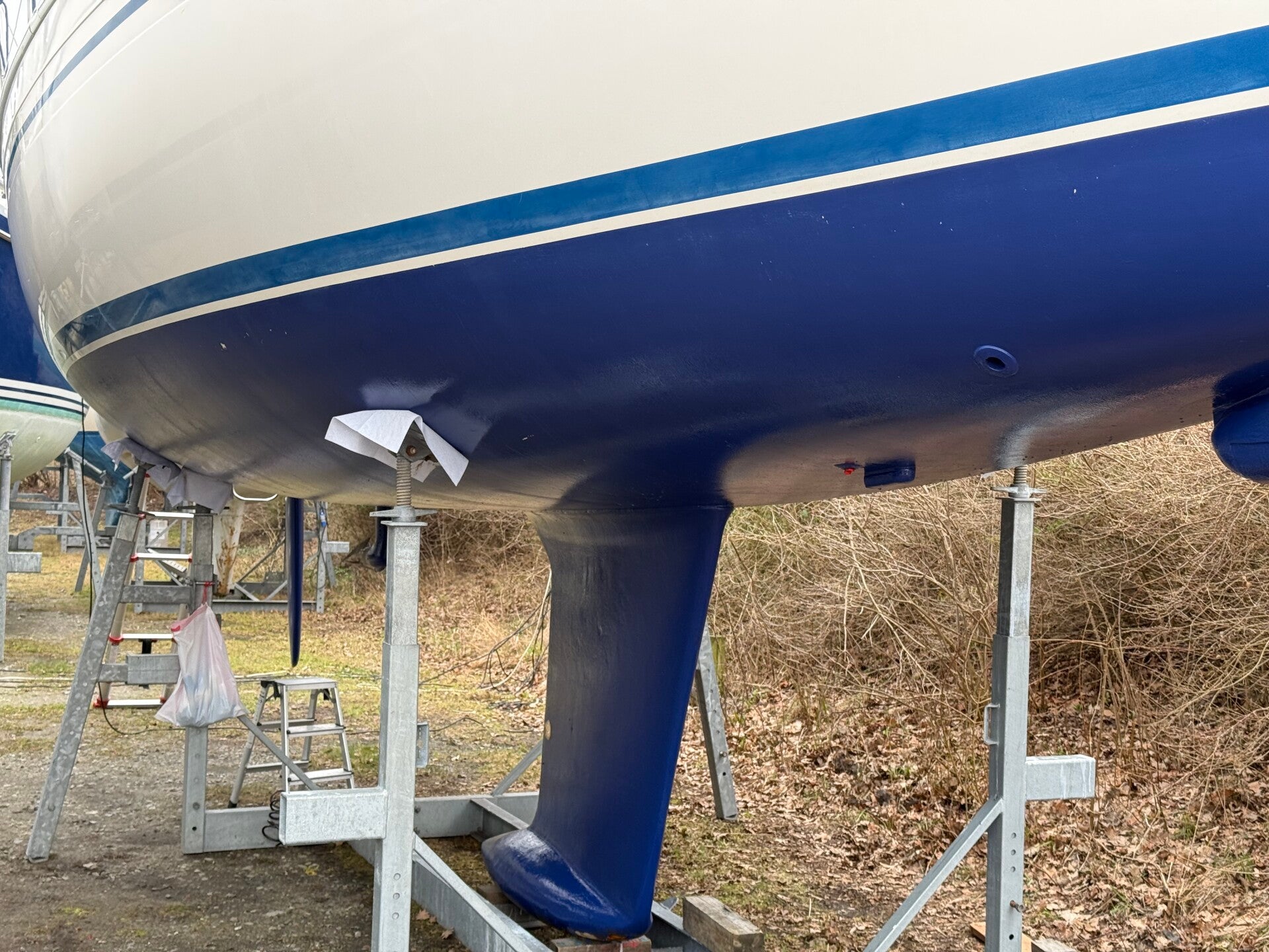Da isen endelig begyndte at slippe sit tag, kunne vi ane, at den havde sat sine spor. Små ridser i bundmalingen dukkede frem langs skroget, og vi kunne ikke lade være med at spekulere på, hvor meget det egentlig havde kostet. Samtidig var vi spændte på noget helt andet – hvor slemt stod det til med begroning efter et helt år i vandet?