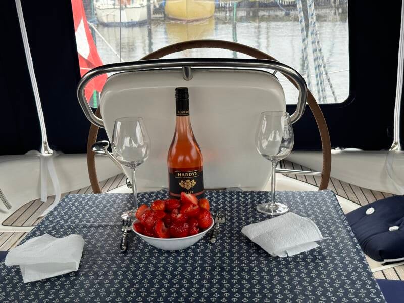 Vi sov længe og startede dagen med en stille og rolig morgenkaffe. Derefter handlede vi i Meny, hvor vi fandt Jacobsen IPA til en god pris og købte friske jordbær fra en lokal bod. Finn brugte det meste af eftermiddagen på at opsætte Garmin GPS'en, mens Birthe vaskede teak og gjorde rent ombord, så alt blev fint. Om aftenen købte vi pizza og nød en dejlig aften sammen. Vi hilste også på mange af vores sejler-venner og havde mange hyggelige snakke. Dagen var en perfekt blanding af praktiske opgaver, afslapning og socialt samvær, hvilket gjorde den både produktiv og hyggelig.