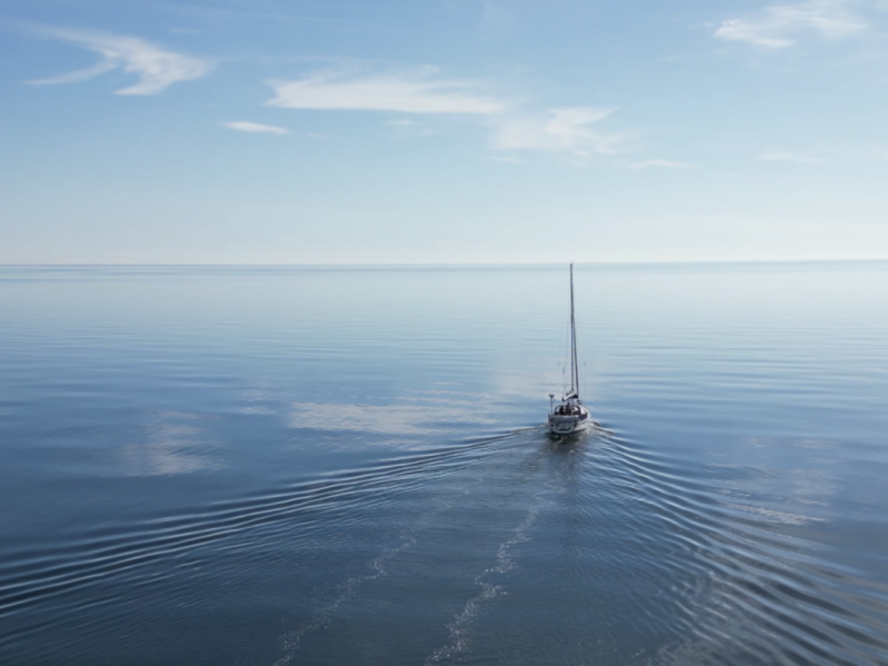 Finn og Lars sejlede fra Øster Hurup mod Ebeltoft omkring kl. 8:30. Der var ingen vind i starten, så Lars afprøvede sin drone til søs. Det viste sig svært at lande på et skib i fart, så de stoppede båden, og Lars landede dronen perfekt, hvilket resulterede i flotte dronefotos og film. Ved Djursland kom der vind, og sejlene gjorde god nytte. Lars brillierede i kabyssen og serverede kogte æg og sildemad, hvilket var lækkert. Turen til Ebeltoft forløb uden problemer, og efter noget søgning fandt de en god, men smal plads og fik båden klemt ind. Det var en god tur med både tekniske udfordringer og gastronomiske højdepunkter.