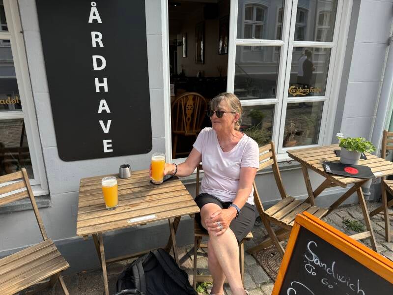 Efter at have set delfinen et stykke tid, satte vi sejl og sejlede mod Ebeltoft. Vinden var næsten perfekt, og det blev en flot tur. Ved middagstid ankom vi til Ebeltoft havn og fandt en super plads. Eftermiddagen blev brugt på sightseeing i den charmerende by, hvor vi også nød en velsmagende IPA fra Ebeltoft Bryghus.