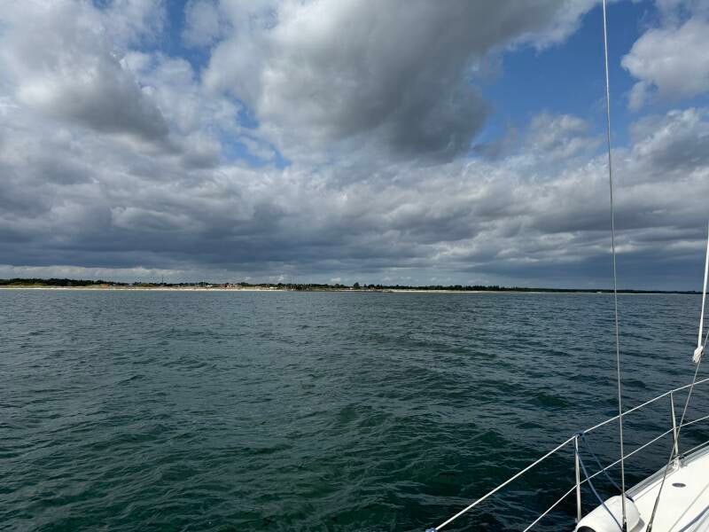 Lørdag morgen opdagede vi, at der var problemer med søtoilettet, og vi mistænkte, at en vandmand var blevet suget ind i systemet. Det krævede lidt tid at få ordnet, men vi klarede det. Bagefter kiggede vi på hinanden og blev enige om, at det var tid til en spontan tur til Hou havn. Vi satte straks sejl, så snart vi forlod Hals havn, og nød en skøn og afslappende sejltur. Ved ankomsten til Hou var der masser af plads, og vi fandt en perfekt plads, hvor vi kunne ligge langskibs.
