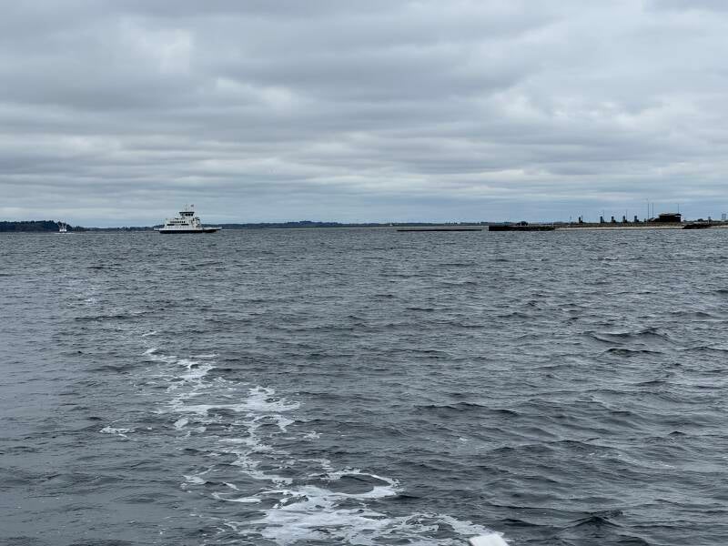 Vi satte sejl og kunne sejle det meste af vejen for sejl. Vinden kom agten fra, og turen blev stille, rolig og utrolig smuk. Undervejs mødte vi kun få skibe – alle muslingefiskere. På et tidspunkt fik vi øje på en sæl, som var tæt på og fuldt optaget af at holde øje med en fiskerbåd. Den opdagede os først i sidste øjeblik og forsvandt hurtigt, tydeligvis forskrækket.