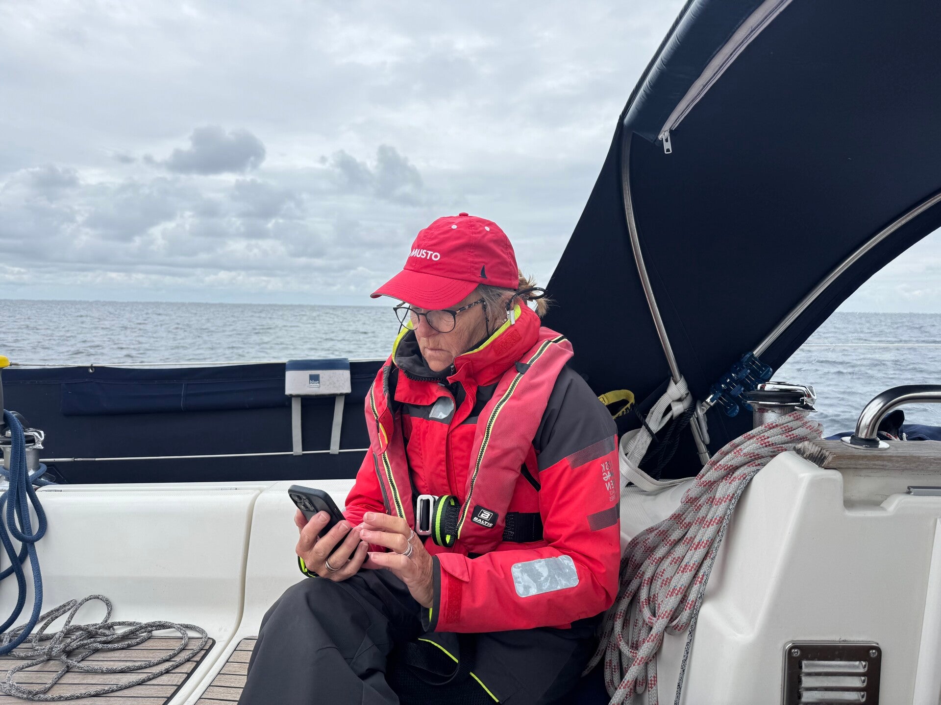 Da vi kom ud i Kalundborg Fjord, stoppede regnen, og der kom en smule vind. Vi satte sejl og sejlede det første stykke med både motor og sejl. Ude i Storebælt ændrede vi kurs mod nord og slukkede motoren. Resten af turen sejlede vi kun for sejl i fint vejr.
