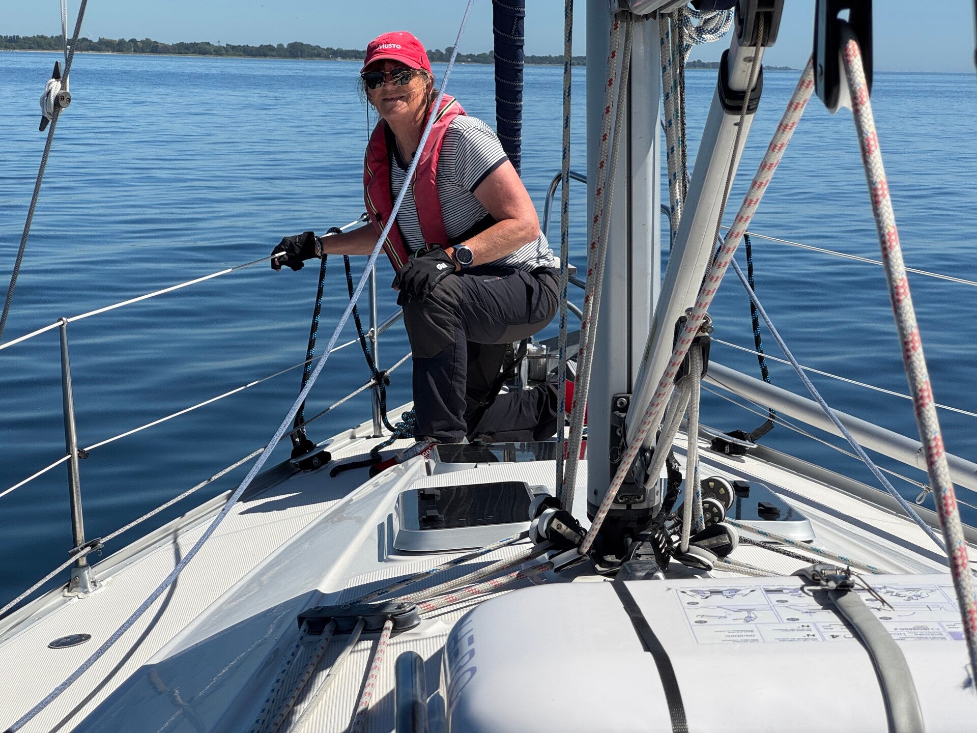 Uden for lufthavnen kunne vi se flyene lette – de kom hurtigt efter hinanden, næsten som perler på en snor. Da vi var kommet over Øresund, gik turen videre gennem Falsterbokanalen. Her var vi heldige, for broen åbnede lige som vi ankom, og vi sejlede igennem sammen med syv andre skibe.