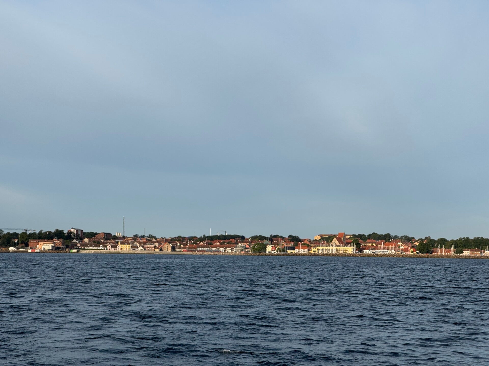 Vi lagde ud fra Simrishamns havn, en hyggelig og velholdt havn, som bød på en lille, charmerende overraskelse: vilde gæs, der spankulerede frit rundt både på området og ude på broerne. Det havde vi ikke set før! Heldigvis havde havnen sørget for god service — en mand gik hver dag rundt og vaskede broerne fri for gåselort. Finn stødte på ham allerede om formiddagen den første dag, og det blev et lille lokalt indslag, vi morede os over.