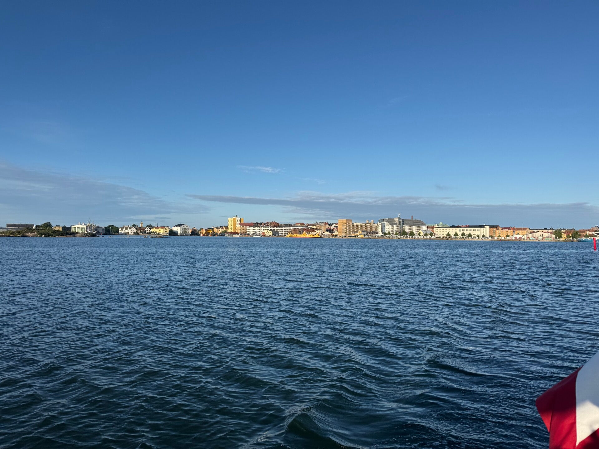 Vi havde i lang tid glædet os til at opleve den berømte Karlskrona skærgård — et sted, som mange har fortalt os skulle være helt utroligt smukt. Allerede fra morgenstunden tegnede det til at blive en magisk dag: vi forlod Karlskrona havn klokken seks, mens solen langsomt stod op og farvede himlen i bløde, varme nuancer.
