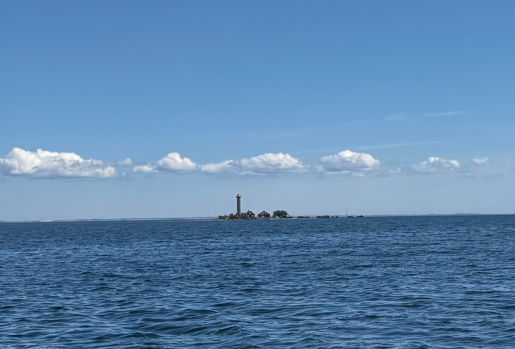 Da vi kom ud af skærgården, satte vi kursen nordpå og lod vinden tage over — sejlene blev sat, og vi nød farten og friheden på det åbne vand. Målet var egentlig Bergkvara, men da vi nåede frem, var vi hurtigt enige om, at havnen og området ikke lige var noget for os. Solen stod højt på himlen, og vejret var helt perfekt, så vi besluttede spontant at fortsætte mod Kalmar i stedet.