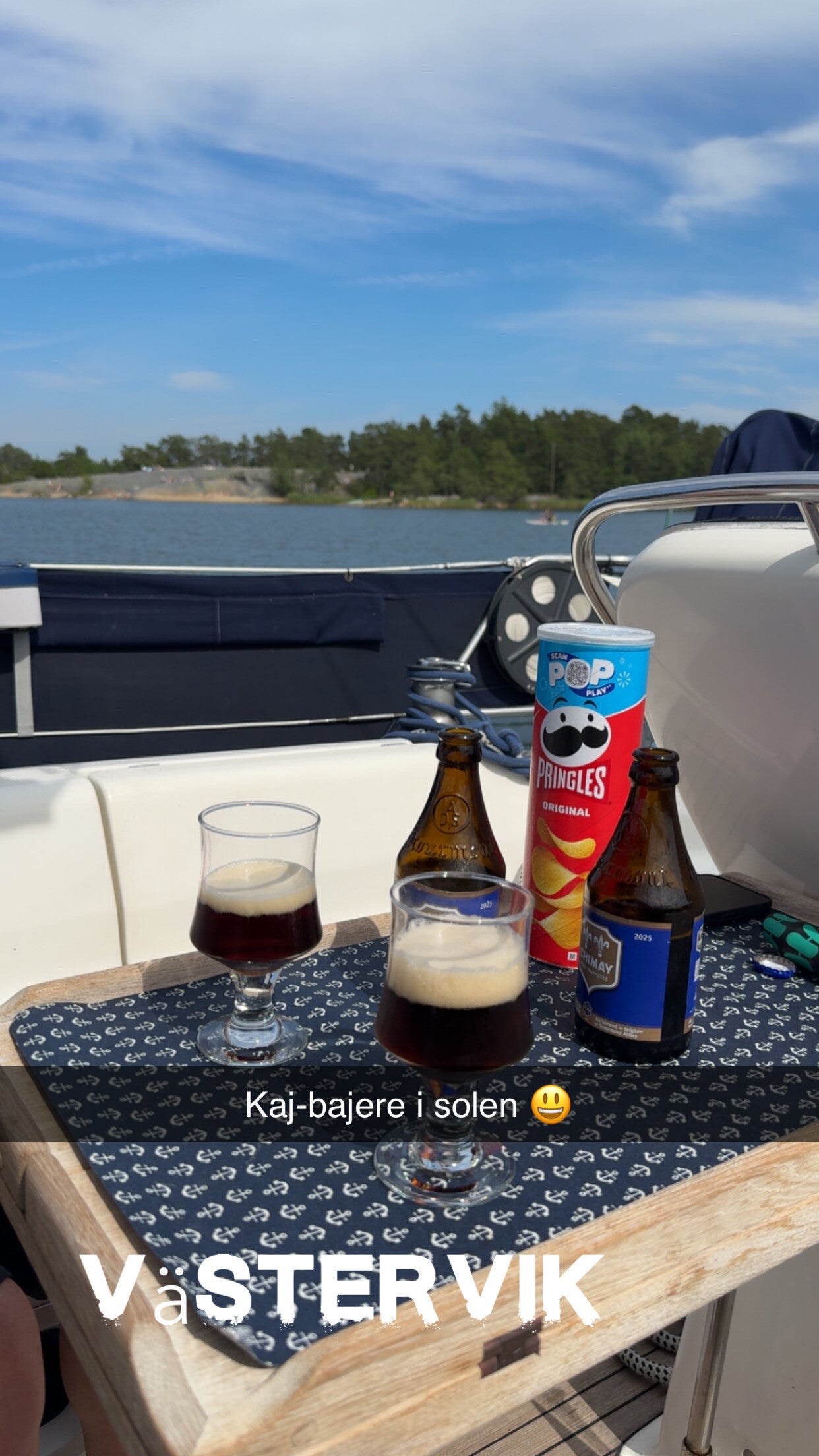 Vi nåede den lille havn Solbergsudde, en skjult perle sydøst for Västervik, ved 14-tiden. Her fandt vi hurtigt en god plads, og snart sad vi med en kold kaj-bajer i hånden, mens vi så ud mod en lille ø, der bliver kaldt Holiday Island. En dag med vind, sol og hundredevis af både – præcis som en sommerdag i skærgården skal være.