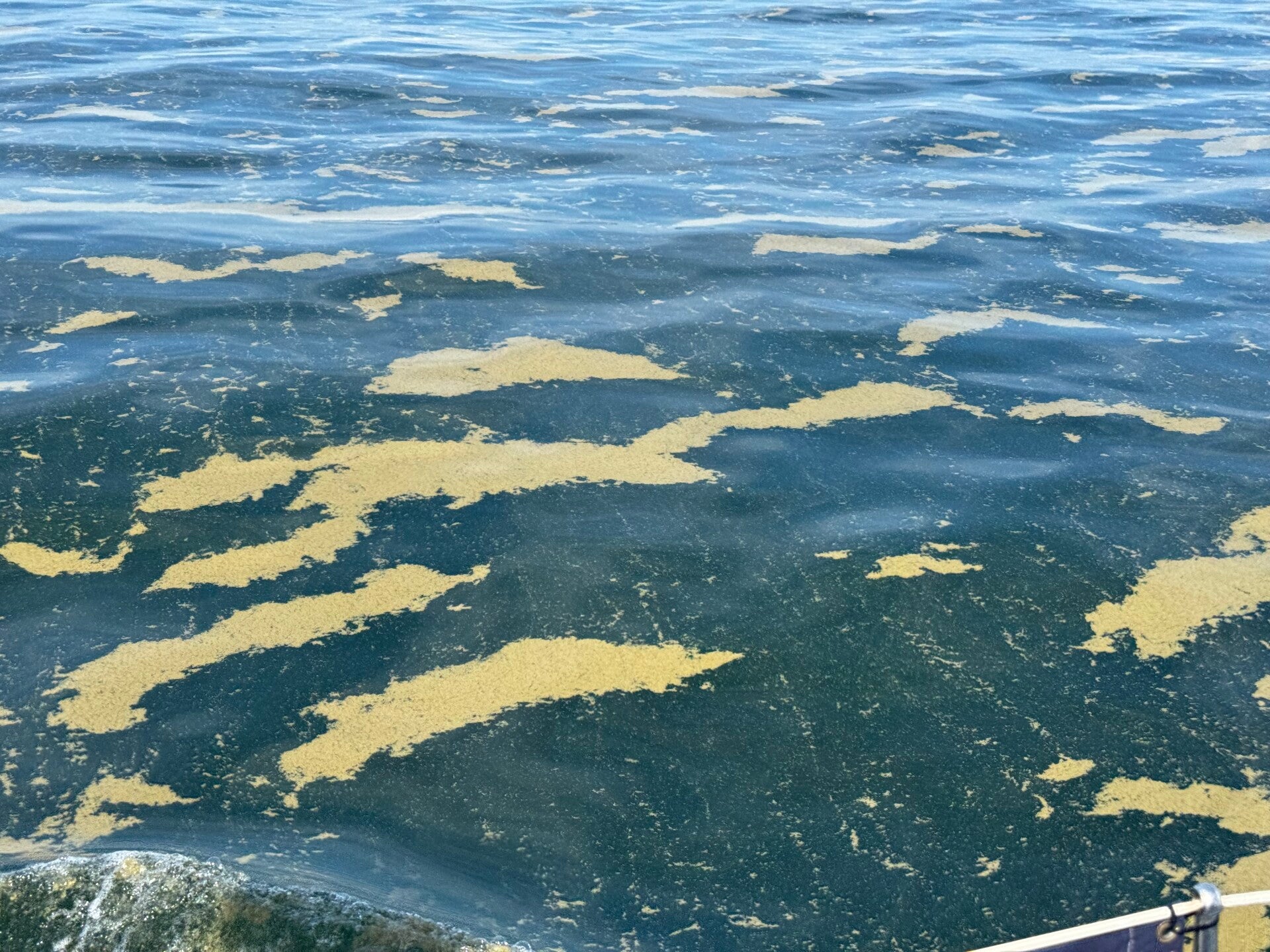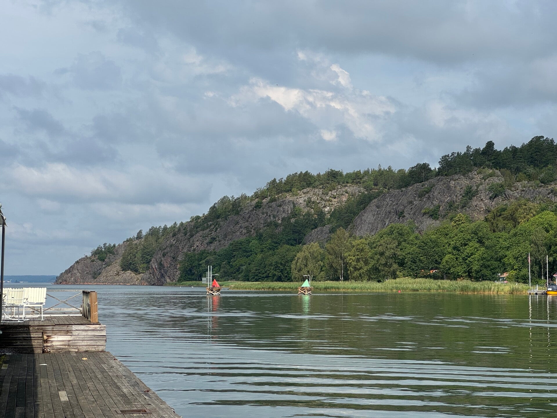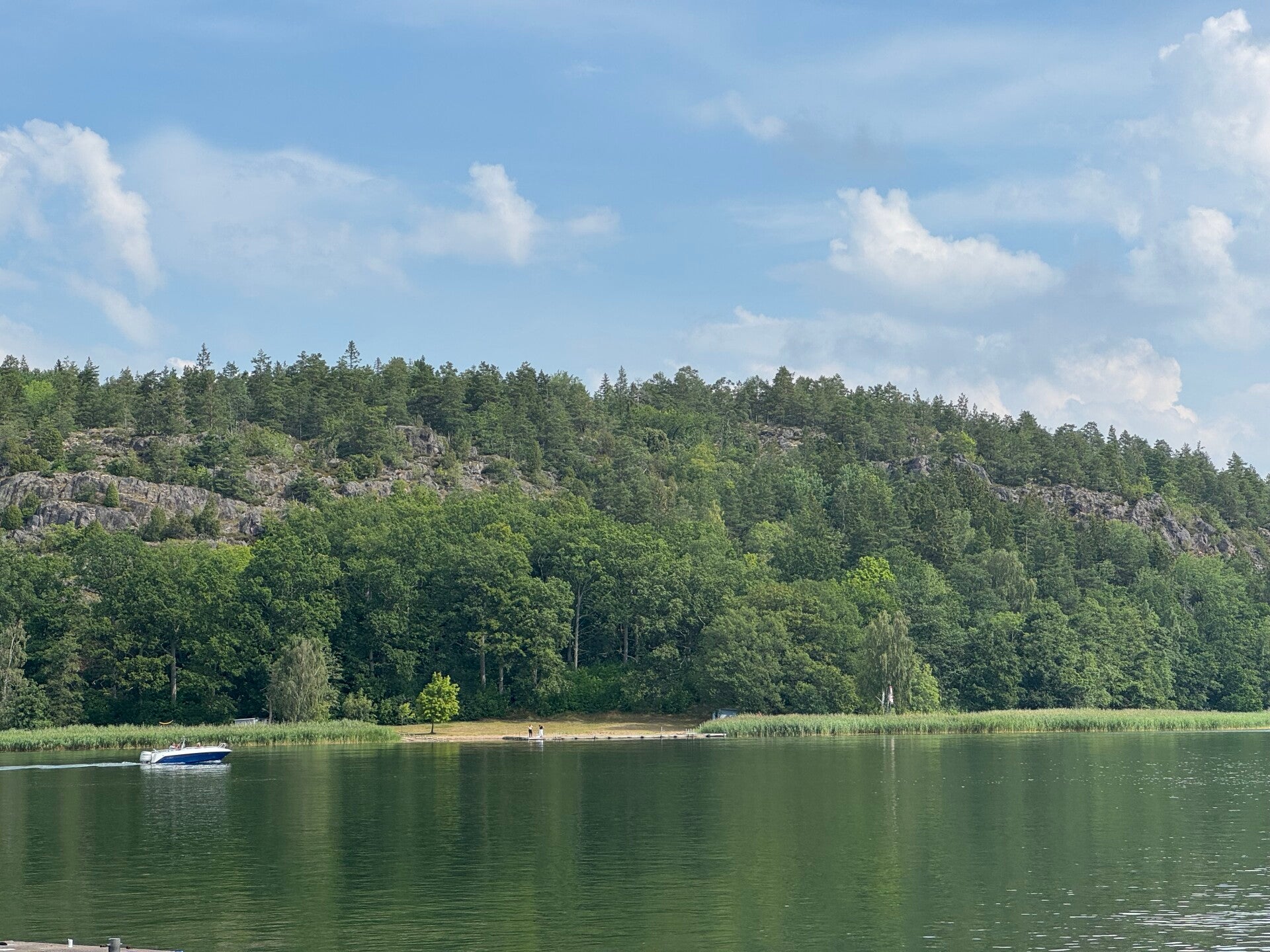 Tidligt om morgenen, klokken seks, smed vi trosserne og gled stille ud på vandet. Vejret var helt perfekt — sommeren havde for alvor fået fat i Sverige, og det mærkedes i både krop og humør. Hele turen foregik for motor, og det første stykke sejlede vi uden for Skærgården. Undervejs flød store mængder af pollen som gule skyer på vandets overflade — et syn, der mindede os om, at naturen også er på sit højeste lige nu.