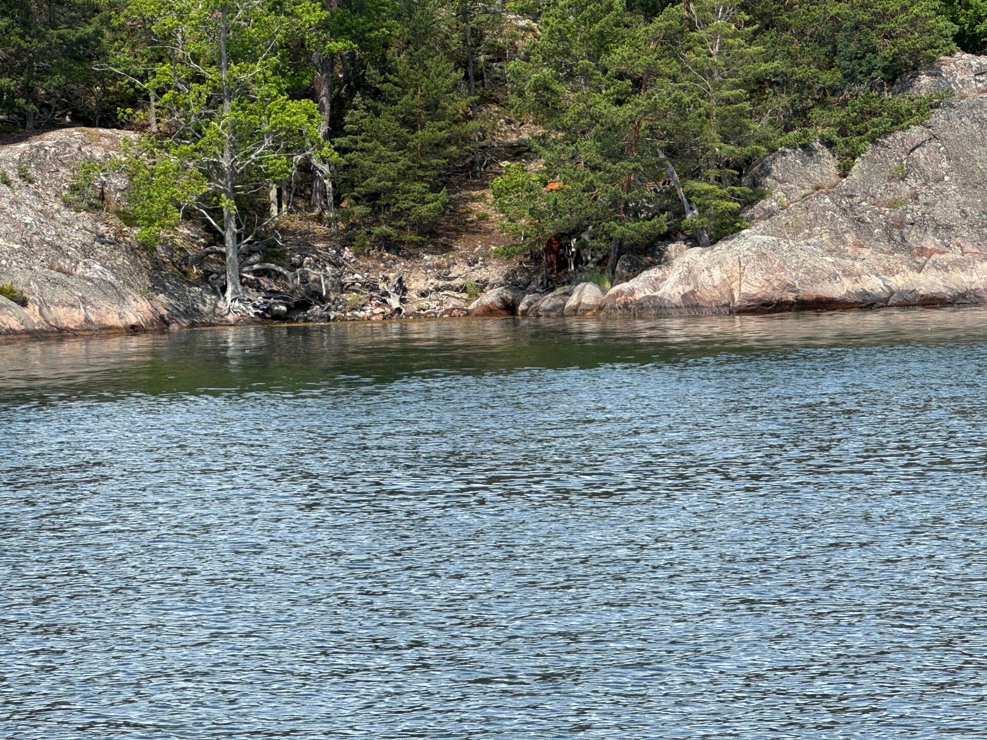 Lidt syd for Fångö stak vi igen ind mellem de smukke skær. Skærgården omkring Fångö er et sandt drømmesyn med små, grønklædte øer, blankt vand og klippeskær, der dukker op som små oaser midt i det blå. Her fik vi en helt særlig naturoplevelse, da vi pludselig så to store havørne kredse majestætisk lige over båden — et øjeblik, vi sent vil glemme.