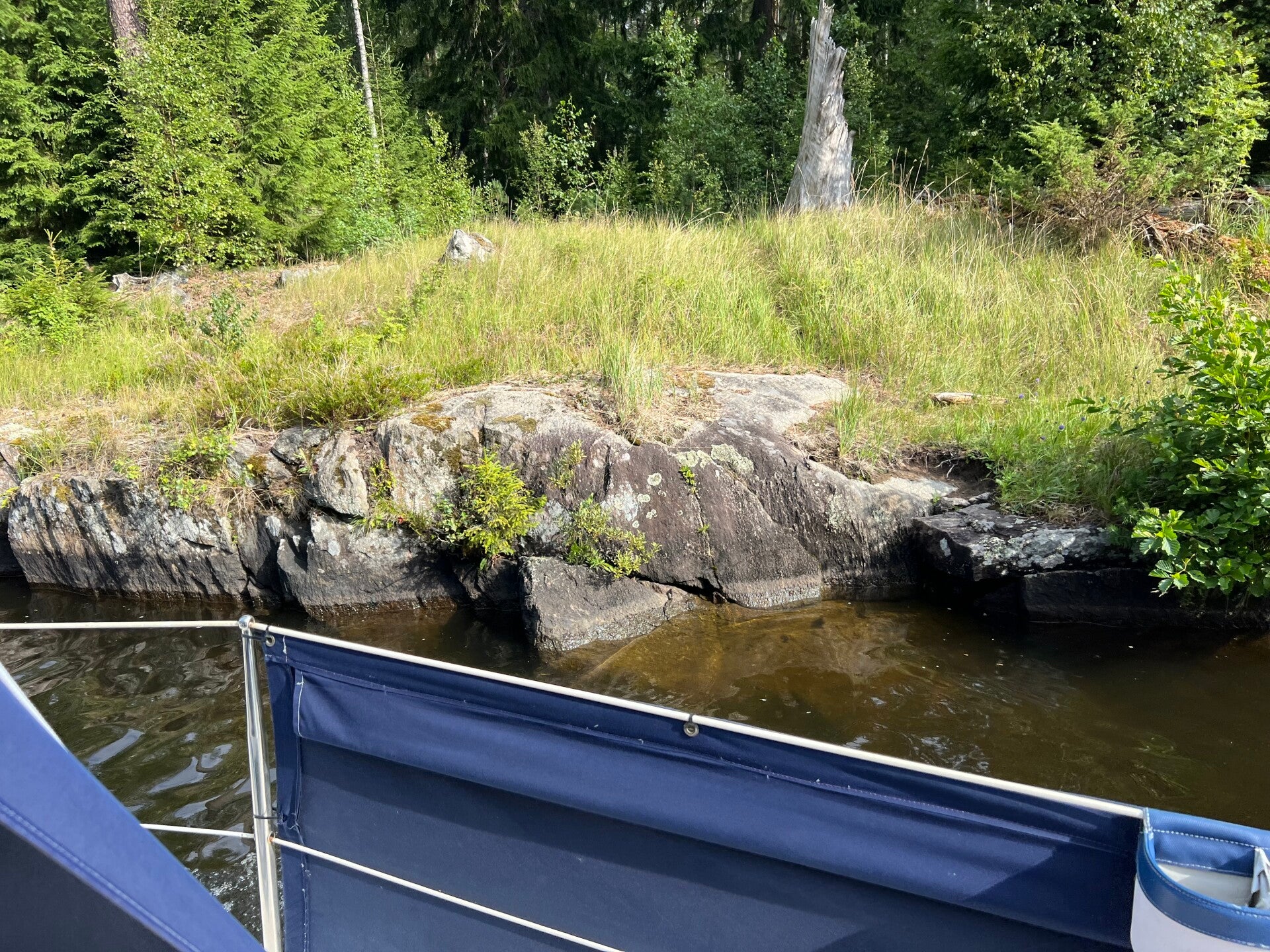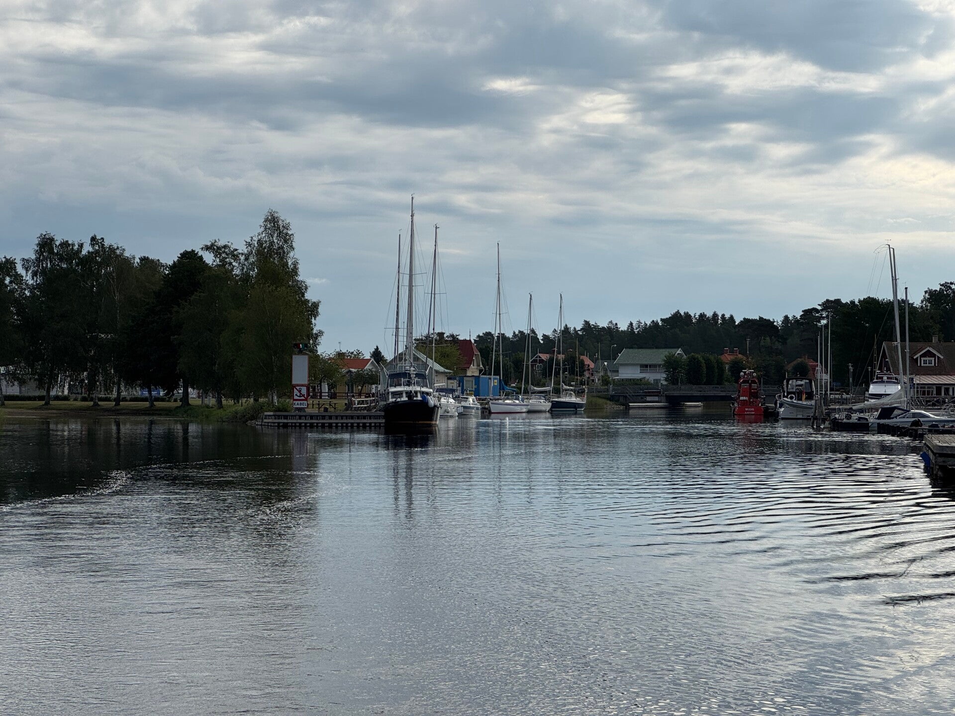 Göta kanalen fra Karlsborg til Forsvik viste sig som en fredfyldt rute, hvor naturen stille åbnede sig omkring os. Skovene spejlede sig i det rolige vand, og der var en stemning af tidløshed over det hele. Da vi nærmede os slusen i Forsvik, lagde vi mærke til en lille havn lige før slusen – men vi sejlede forbi i den tro, at Forsvik Havn måtte ligge efter slusen og broen. Det gjorde den ikke. Det var netop den lille havn før slusen, vi skulle have lagt til i.