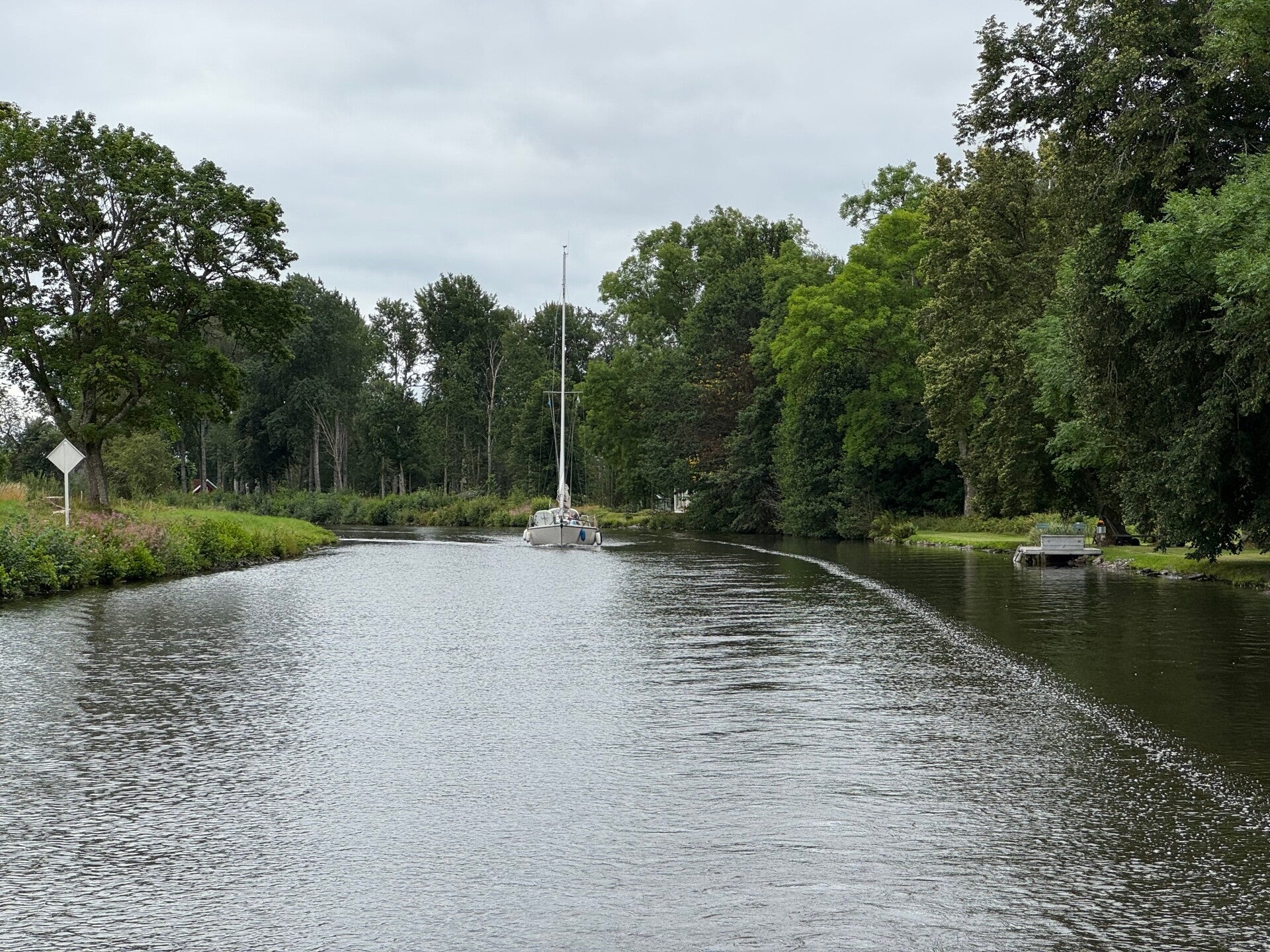 Turen langs Göta Kanal var som altid betagende. Mellem Vassbacken og Töreboda snoede kanalen sig som et grønt bånd gennem det svenske landskab – stille, frodig og med idylliske bredder dækket af vilde blomster, gamle træer og enkelte røde hytter, der spejlede sig i vandet. Vejret var venligt stemt: tørvejr med en blanding af sol og skyer og omkring 21 grader – perfekt sejlervejr.
