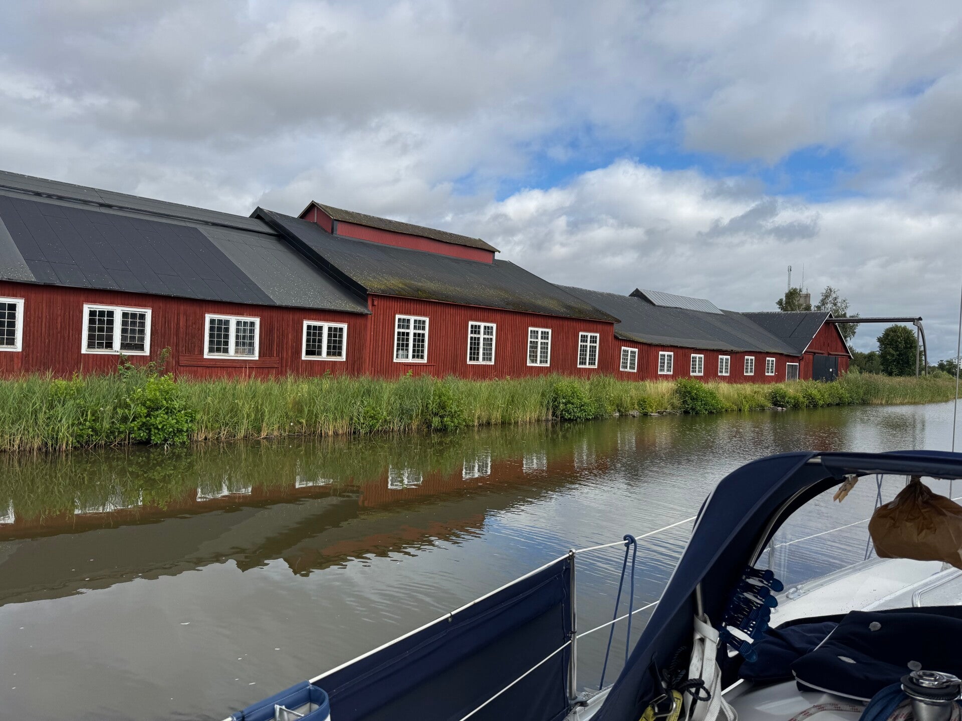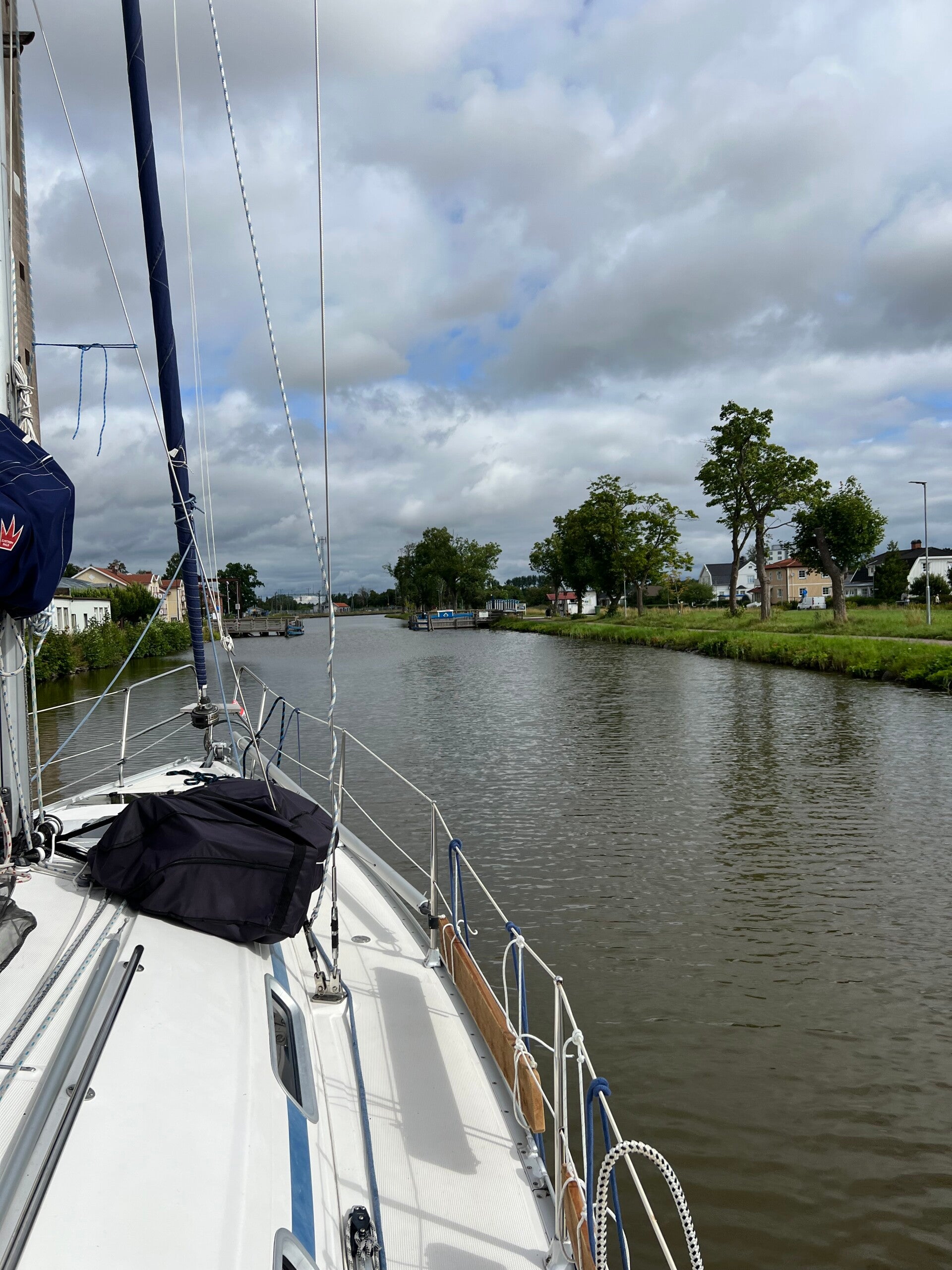 Vi var dog enige om, at det var tid til at sejle videre – eventyret kaldte. Klokken ni blev trosserne kastet, og vi satte kursen mod Töreboda, hvor der ventede lidt mere byliv og vigtigst af alt: indkøbsmuligheder.