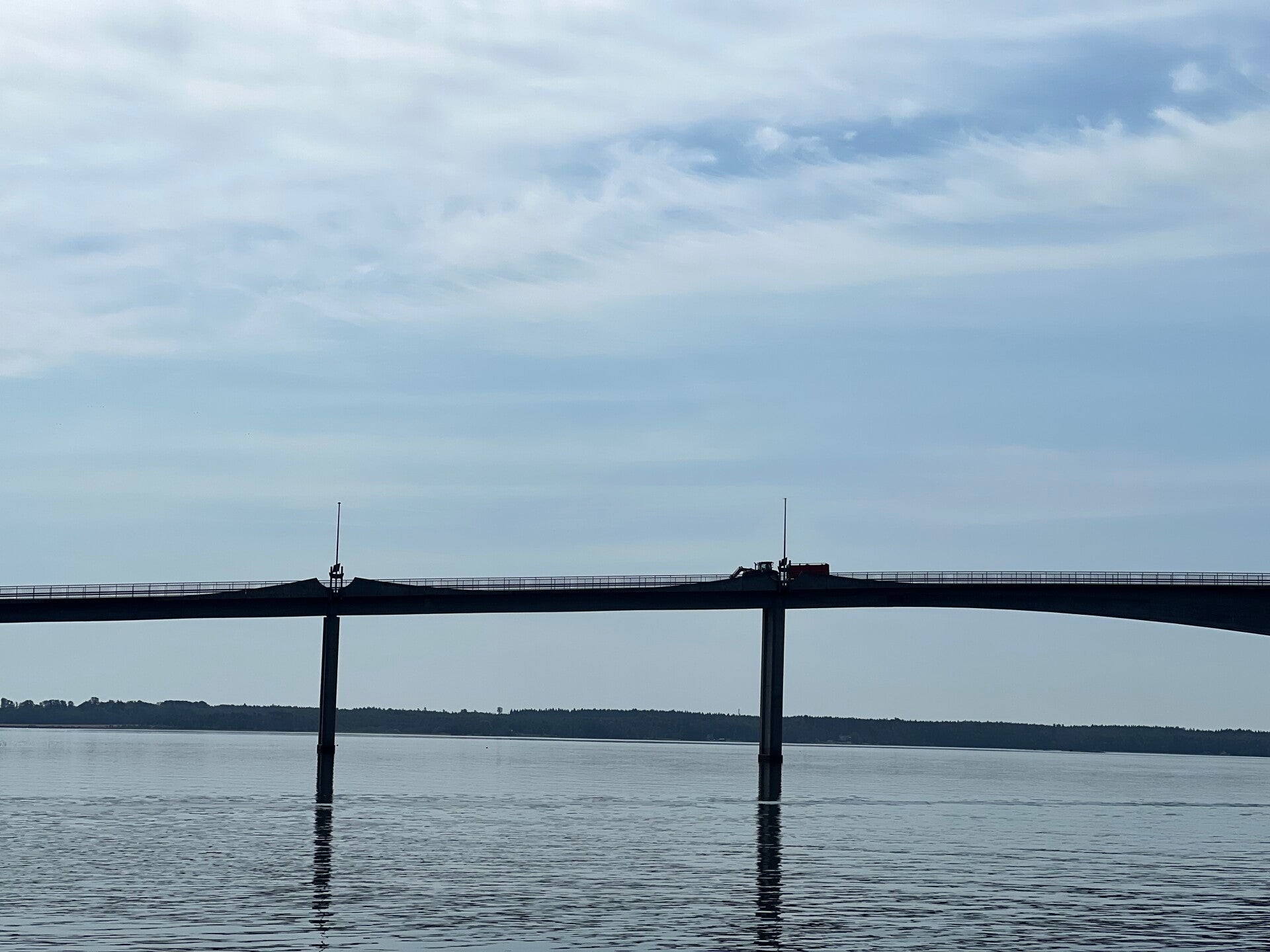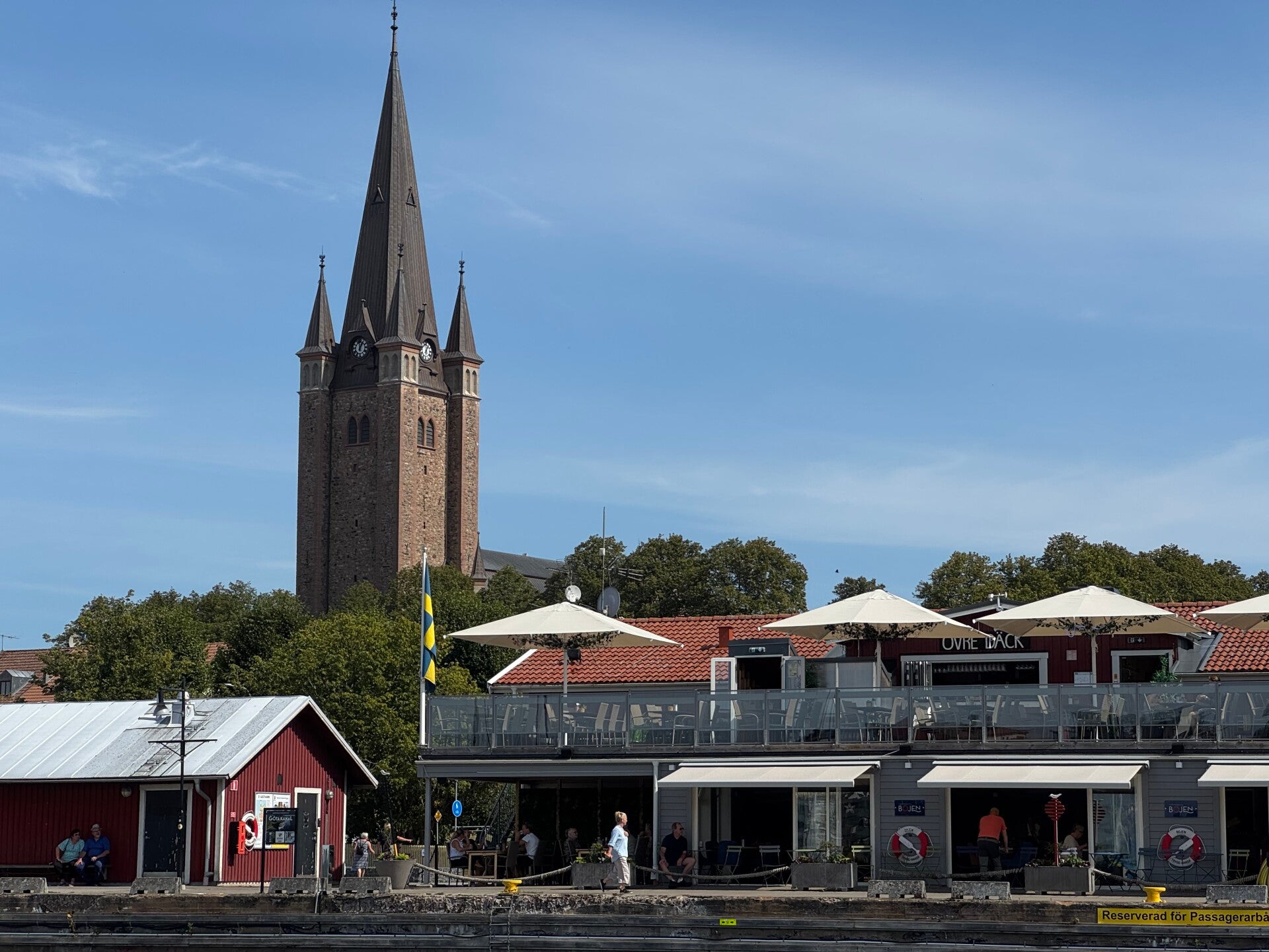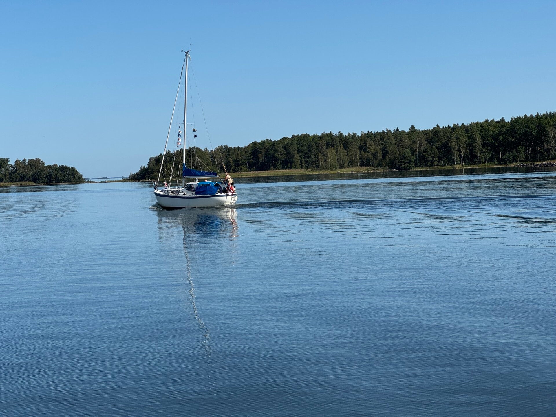 Idet vi gled ud i Vänern, ringede telefonens stopur: Rugbrødet var færdigt! Vi satte kursen mod Mariestad i strålende sol og vindstille vejr. Strækningen er bred og åben med rolige vandflader, der på en stille dag kan ligne et spejl. Kystlinjen veksler mellem skovklædte strækninger og små, åbne pletter, og horisonten er vid og lys.