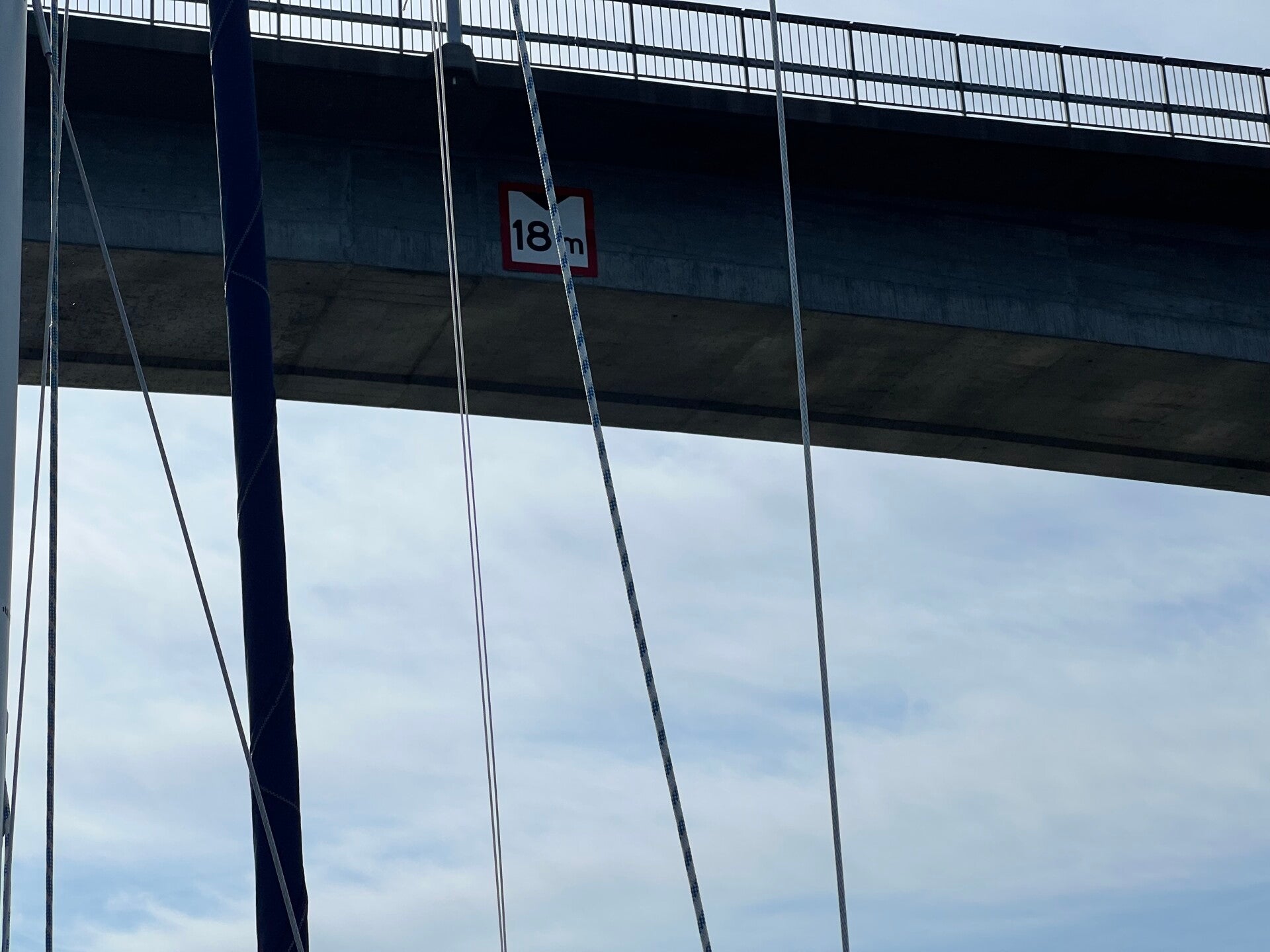 Pludselig lød klokken for en broåbning og slusning. Vi regnede med, at det var en rutebåd, men Finn gik alligevel op for at kigge. Til vores overraskelse var det en dansk sejlbåd, som var på vej ned mod det bassin, vi lå i. En hurtig snak med slusepersonalet afslørede, at de skulle ud i Vänern – og vi kunne komme med! Afgang om 10–15 minutter.