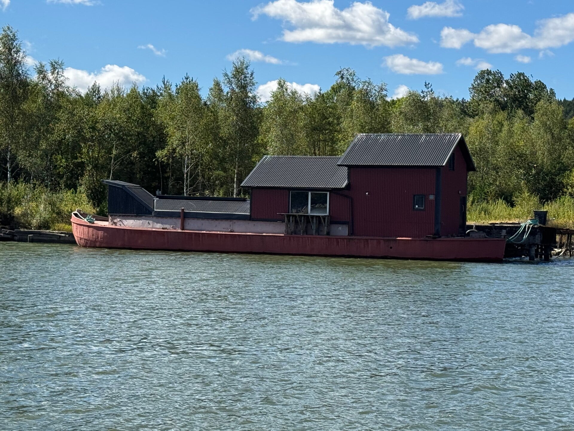 Mens vi ventede foran den første sluse, dukkede en svensk båd op. Før vi kunne nå at reagere, havde de presset sig foran os og lagt sig på tværs i indsejlingen. Vi måtte sætte FRU BIBI fuld bak for at undgå kollision – en oplevelse, der ikke just emmede af godt sømandskab. Vi lod svenskerne gå ind først, og alt gik nogenlunde roligt gennem den første sluse.