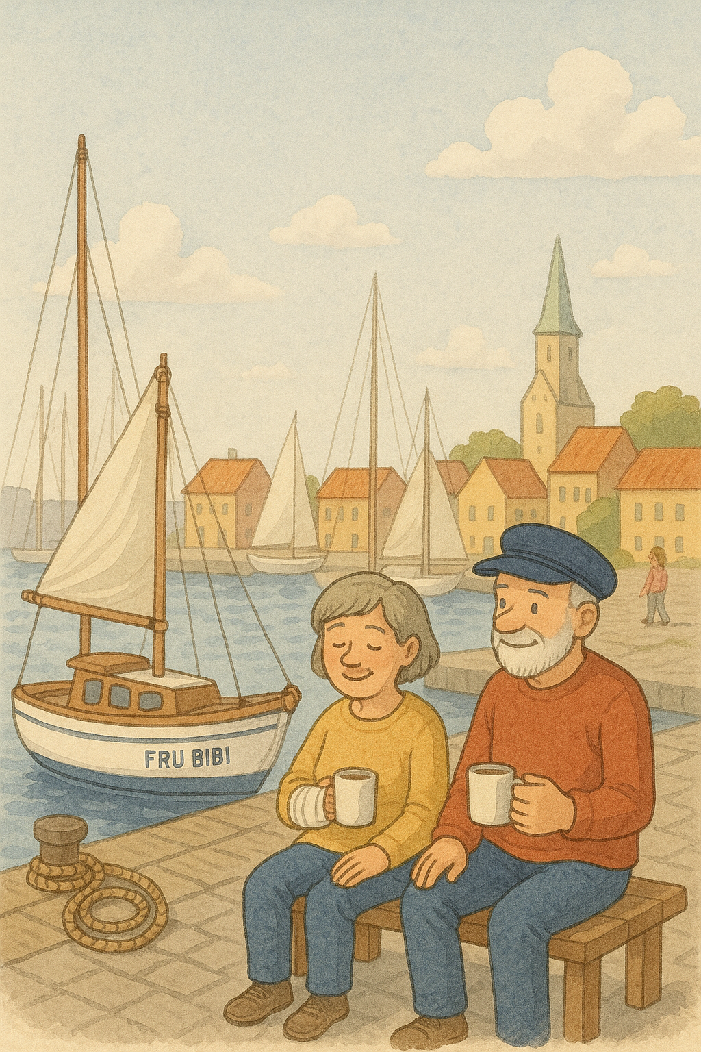 Vi har valgt at blive liggende et par ekstra dage i vores hjemhavn i Aalborg. Birthe har desværre haft problemer med sin tommelfinger – en såkaldt springfinger, som gør ondt, hver gang den bliver brugt. Heldigvis har hun fået en blokade, og den er begyndt at virke. For en sikkerheds skyld har vi dog besluttet, at der skal gå nogle dage endnu, før vi stævner ud igen, så fingeren kan få ro og ikke bliver belastet af tovværket.
